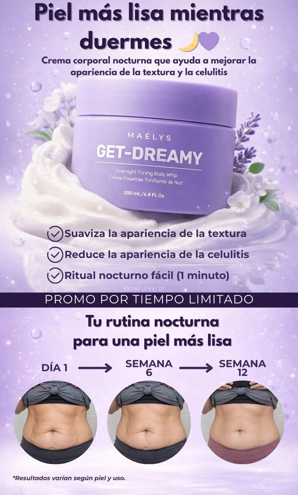 No es una “cura” médica. Está pensado para ayudar a mejorar la apariencia de la celulitis y la textura con uso constante. Resultados varían.